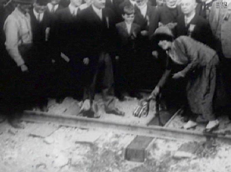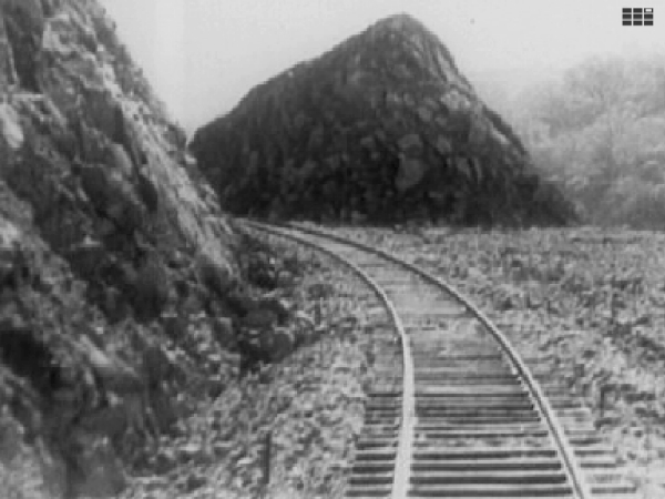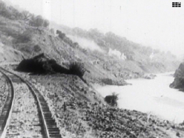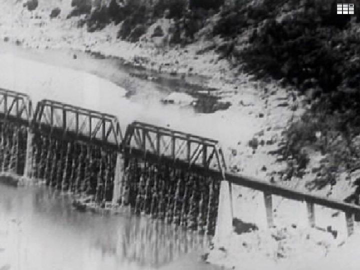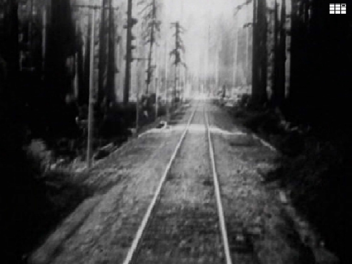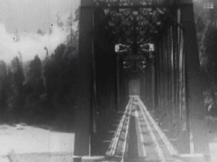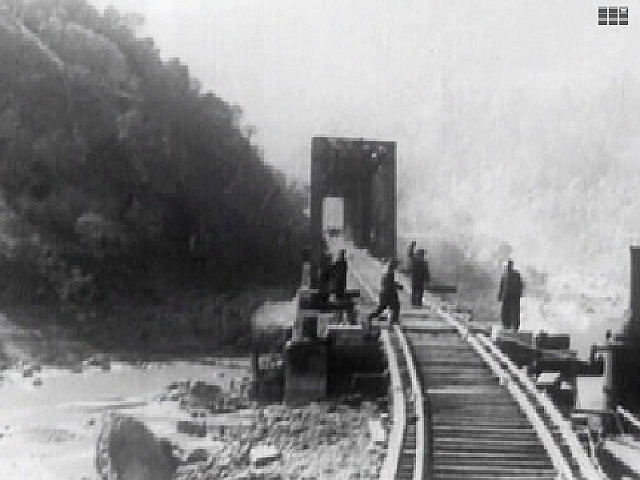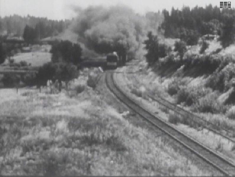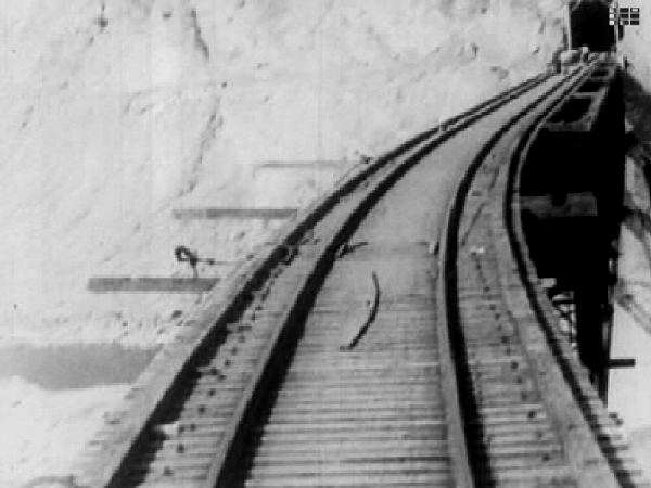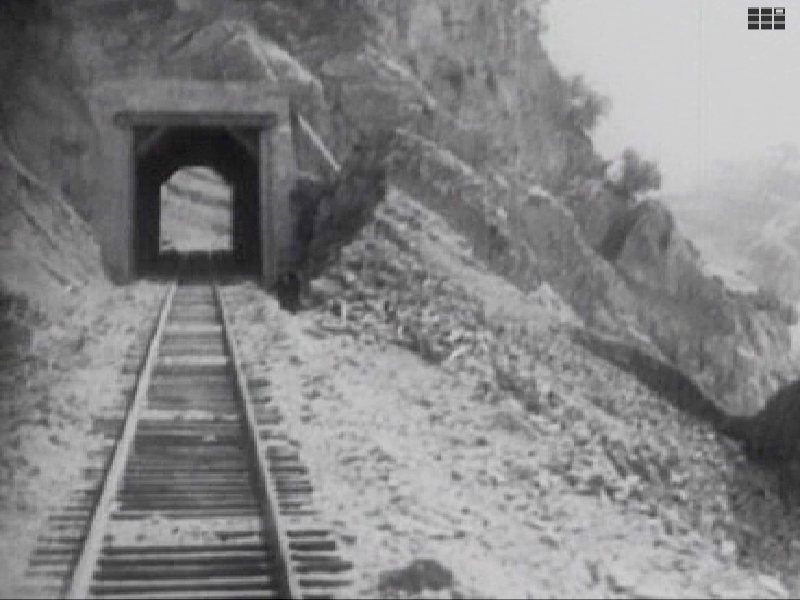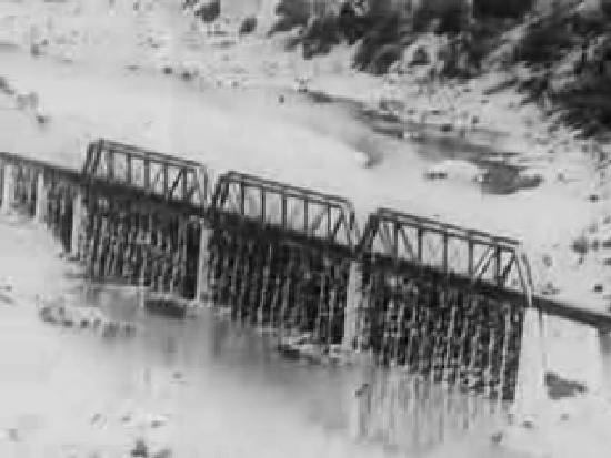 Below is a series of "screenshots" from three silent movies on the NWP... two are apparently from when the line opened, along the route, the "golden spike" ceremony, and a huge parade in downtown Eureka. The third film is about a "Redwood Empire Special," identified as a 121-car train of North Coast Redwood destined for the east from Sacramento over Donner. Power is SP Cab-Forward 4144; California Governor James "Sonny Jim" Rolf hams it up quite a bit as the supposed engineer of the train, which is described in the film as the heaviest ever taken over Donner in a single section- no date, but probably about 1930.