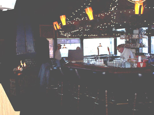 Upstairs in the bar , firplace to the left. It's only 10:30, so we are the only customers. Everyone else is downstairs in the restaurant.