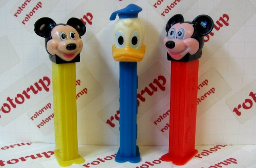Group 7 / 10.00 mickey/wide nose yellow stem / 3.9 china donald / closed mouth / european issue / 3.9 austria mickey / wide nose / red stem some paint loss on white of eyes / 3.9 hungary |