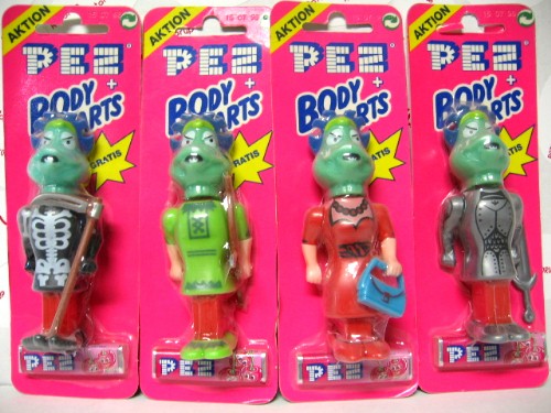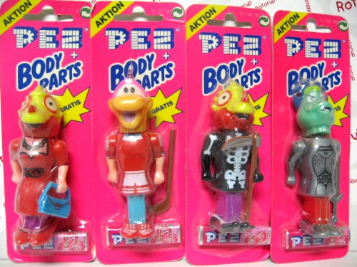 In the 1990's PEZ sold *body parts* which in fact were clothes for our PEZ dispensers. These sets of clothes also included arms, hands sometimes feet and always shoes. It is a lot of fun to play dress up with your PEZ. The prices are right.