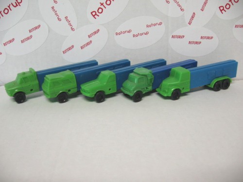 These beautifully colored trucks had rolling wheels and many different combinations of colors