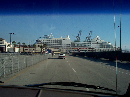 Dec,22nd. Arriving at the dock. Our ship is straight ahead. The Viking Serenade, Royal Caribbean Lines. Four day cruise, docking in Ensenada Mexico, San Diego, and Santa Catalina Island.