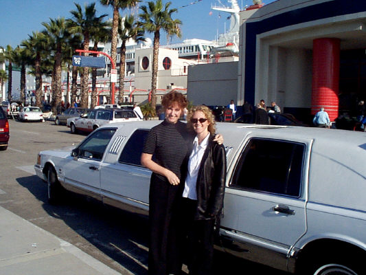 Wendy and Stacey in Front of Pete's Limo. Den and Wen were in the Van, and we followed Pete driving his Limo to the Docks .... boy was that ever a hairy adventure . . . driving fast would be a huge understatement.