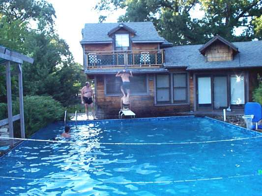 Terry climbs up on Ld's back.