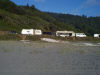 This is the beach at Orick, N. California.  In the distance, on the left, is the beginning of the row of RV's that form a line along the roadside of about 100-150 RV's  All have a view of the waves.