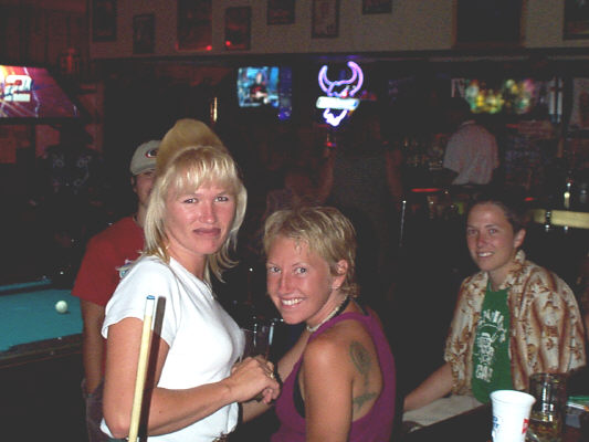 Sandy and Stacey, with Abby in the background. Ld's pool stick in front of Sandy. Wow, I was surprised when LD said he paid $300.00 for that pool stick.
