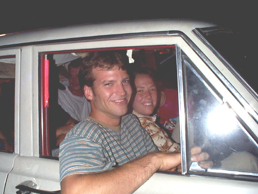 I tried to get a picture of them inside, but could only get the front seat. Just as we pulled out of the parking lot, we noticed a cop car pulling in (routine patrol), so of course the lot of them jumped out of the car and went back into the bar.
