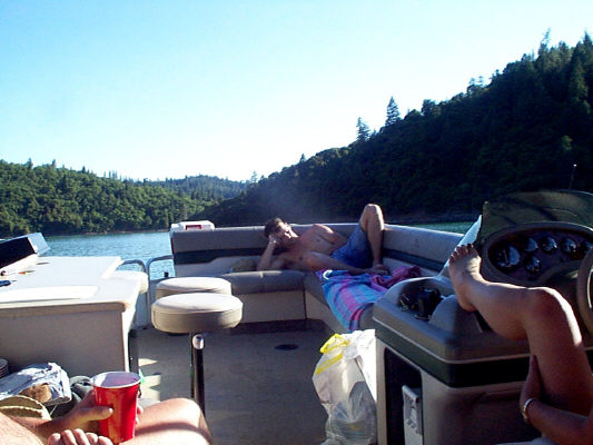 We finished our meal, spare ribs etc, then started to head back to Jones Valley Marina. LD grabs a nap. It's been a great day, and we are all looking forward to doing it again.
